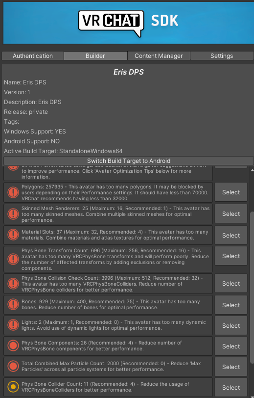 Avatar Stats: 257k polys, 37 mats, 20.76mb